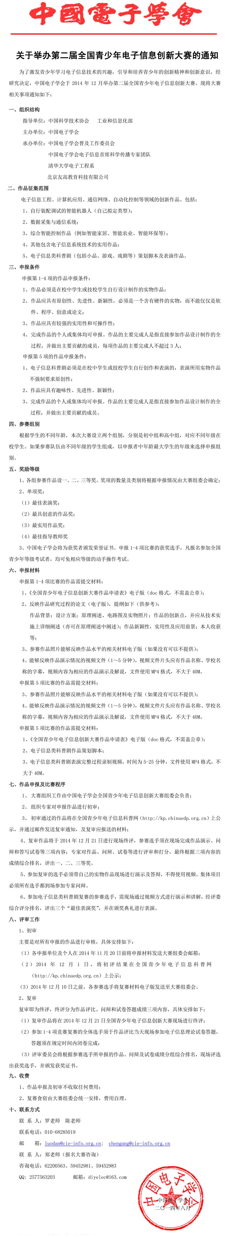 2014年12月21日在清華大學羅姆樓內(nèi),第二屆全國青少(shǎo)年電(diàn)子信息創新大賽拉開(kāi)了帷幕,30多(duō)所學校(xiào)、100多(duō)名選手的參與讓這屆大賽熱鬧非凡。