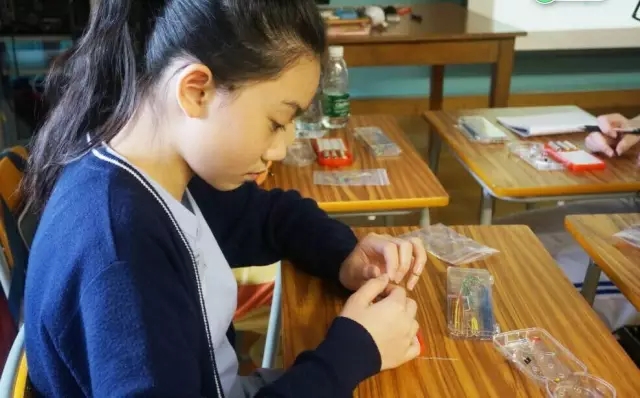 ▲兩地學生(shēng)合作以電(diàn)路零件,做出發光燈飾