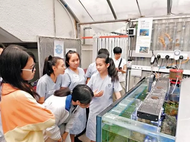 ▲餘近卿中學學生(shēng)向內(nèi)地學生(shēng)介紹魚菜共生(shēng)園地的運作和(hé)生(shēng)物種類