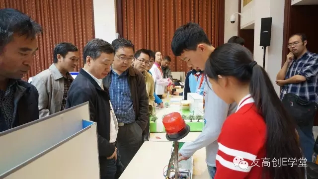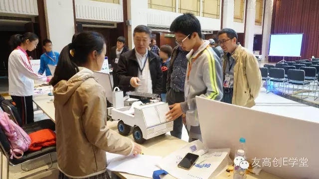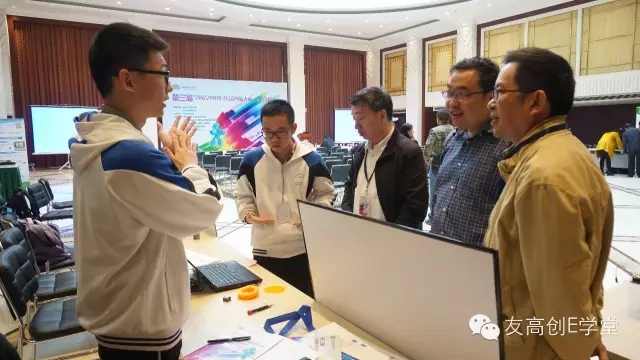 評委在展示區(qū),仔細觀看選手們演示作品并提出相應問題。