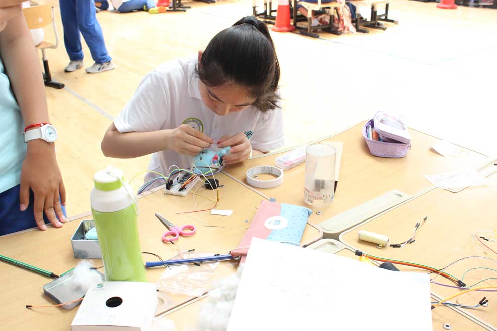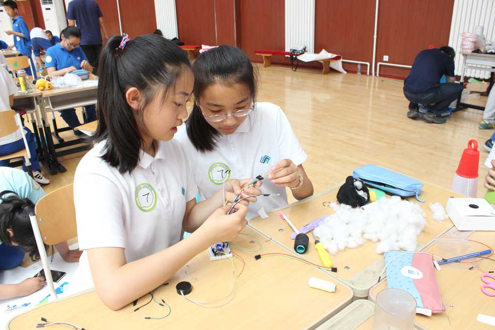 創客馬拉松比賽于上(shàng)午9時(shí)正式開(kāi)始。由于前期友高金牌級講師(shī)們圍圍繞創客項目,對學生(shēng)的創造性思維進行(xíng)了全方位的拓展,因而在活動當天,友高教育負責的班級中,孩子們從玩具改造到電(diàn)路組裝設計(jì)都思維活躍、技(jì)法娴熟,整個(gè)活動現場(chǎng)氣氛融洽,學生(shēng)們的作品更是見證了創客的魅力和(hé)創新的神奇!