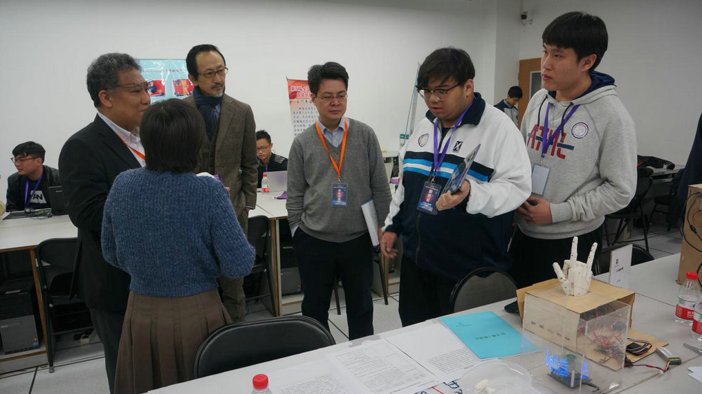 本屆大賽(電(diàn)子控制(zhì)賽)設置了工程賽與挑戰賽兩個(gè)項目,小(xiǎo)學、初中、高中三個(gè)組别。來(lái)自北京、山(shān)東、江蘇、上(shàng)海、吉林等五大賽區(qū)的近百名選手挺進總決賽。除由北京大學電(diàn)子信息科學基礎實驗中心主任 王志(zhì)軍教授、清華大學電(diàn)子工程系 副主任 鄧北星教授、北京航天航空大學電(diàn)子信息工程學院 副院長 王俊教授組成的評委團外我們還(hái)邀請(qǐng)了來(lái)自日本九州工業大學生(shēng)命體(tǐ)工學研究生(shēng)院機器(qì)人(rén)專業的石井和(hé)男教授擔任工程賽特邀評委(石井和(hé)男教授學生(shēng)徐青女士擔任翻譯)。石井和(hé)男教授與參賽選手互動交流,詳細詢問他們的設計(jì)構想,并積極給出自己的建議,讓參賽選手充分領略到了這位異國教授的風采。