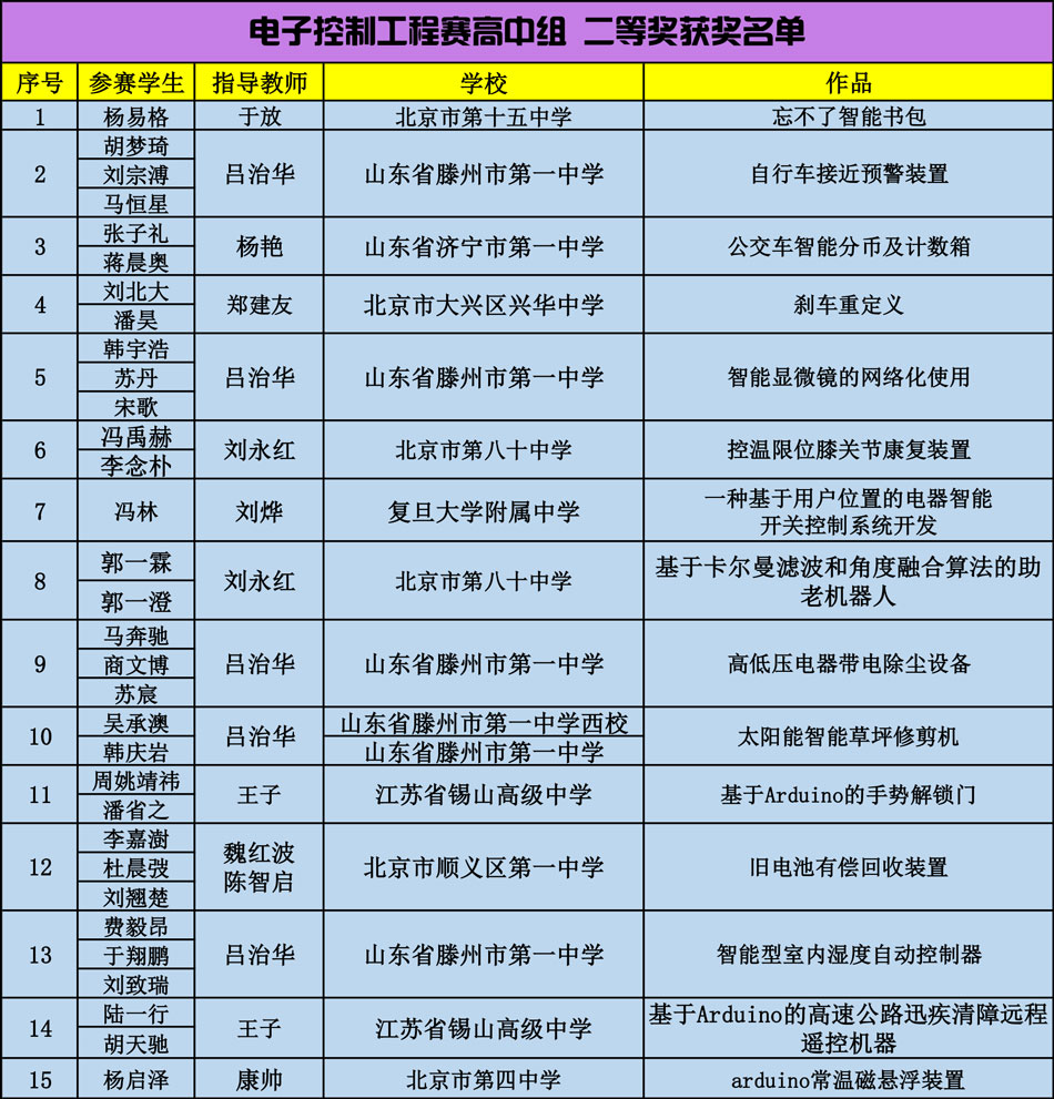 本屆大賽終評出挑戰賽一等獎2項、二等獎5項、三等獎6項,工程賽一等獎4項,二等獎15項,其中北京市第八十中學 李葉琛、李冠辰設計(jì)的作品“斜翼飛機舵面控制(zhì)問題的改進設計(jì)與實踐”獲得(de)了特等獎。同時(shí)也獲得(de)了日本九州機器(qì)人(rén)遊學深度體(tǐ)驗夏令營的免費名額(價值12800元人(rén)民币),而其他獎項也分别獲得(de)該夏令營價值10800、8800、6800、5800的遊學獎學金。這也是為(wèi)了慶祝大賽五歲生(shēng)日,北京有恒教育科技有限公司和(hé)北京賽特控股有限公司聯合推出的獎品大禮包,為(wèi)的就是讓我們的選手有機會(huì)走出國門(mén)去交流,去學習。